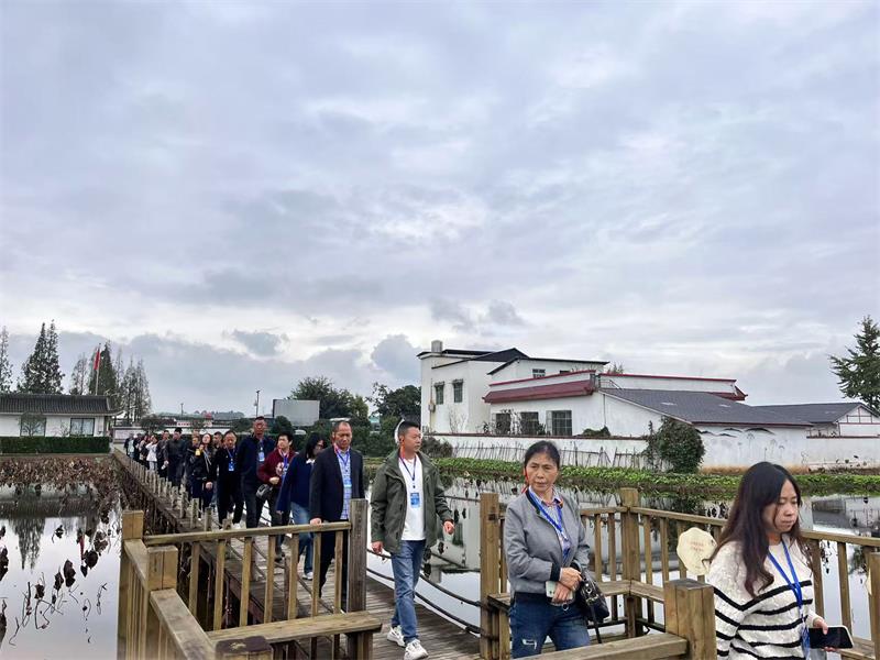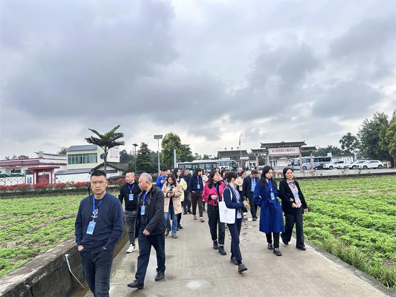 涪陵区农技人员知识更新培训第二期学员来到四川省眉山市东坡区太和镇永丰村现场学习,了解当地农民中药材种植情况情况,在中国泡菜博物馆听讲解。