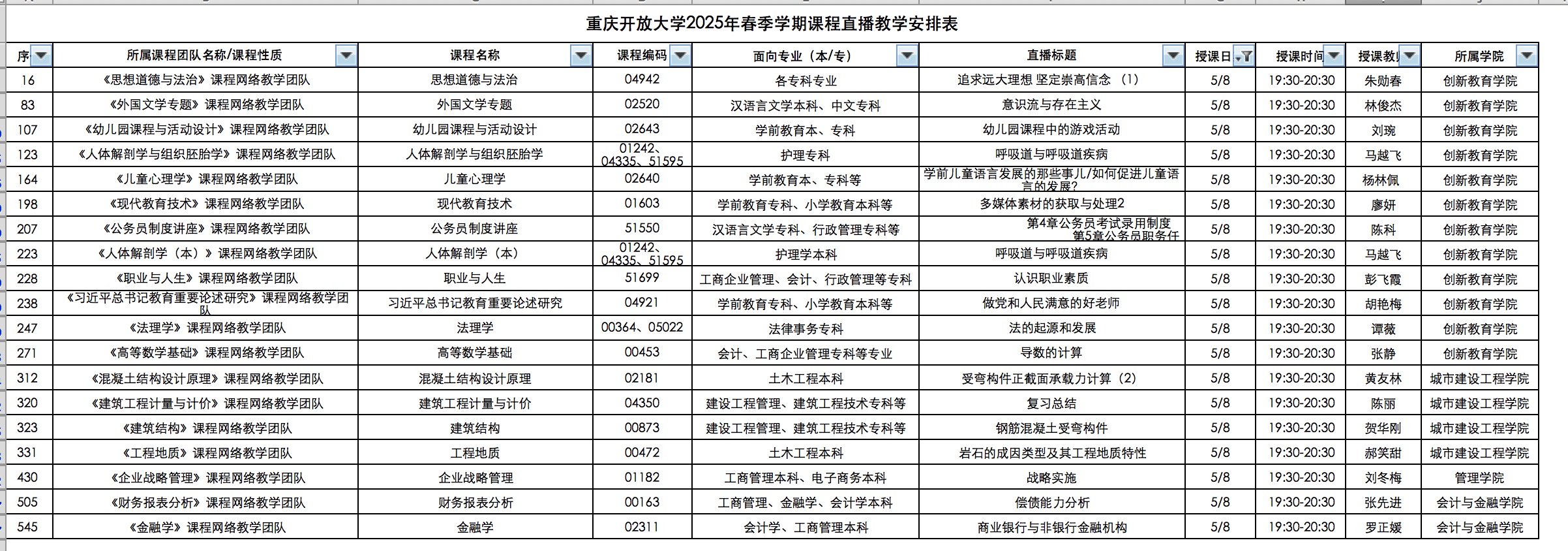 5月8日 重开大、涪陵电大辅导课表