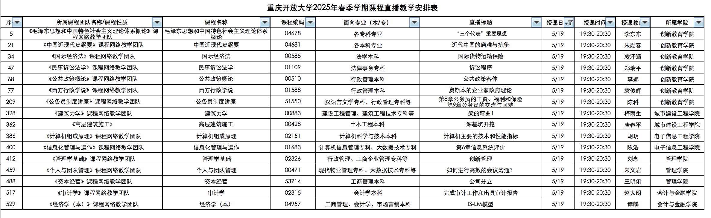 5月19日重开大辅导课表