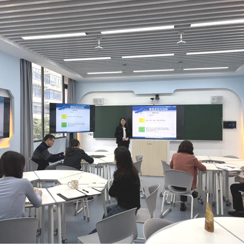 教研组活动的亮点更在于深度互评环节。每位青年教师展示结束后,其他教师均围绕教学目标、课堂互动、思政元素等维度逐一进行点评,在肯定展示教师特色亮点的同时,也提出兼具针对性和操作性的改进建议,有效促进了教师间的经验共享与专业成长。