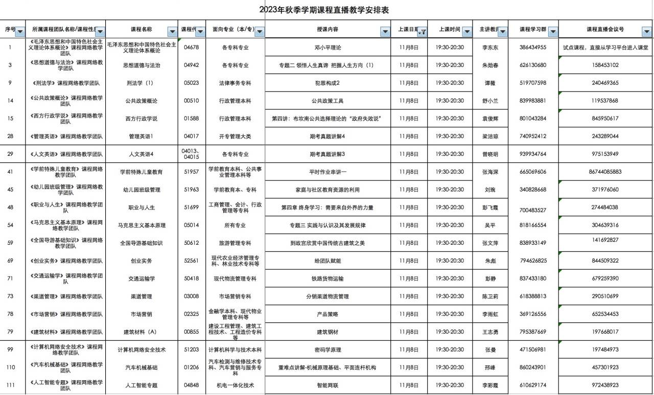 今日重开直播课程如下图所示,请涉及到的班主任通知学生按时上课