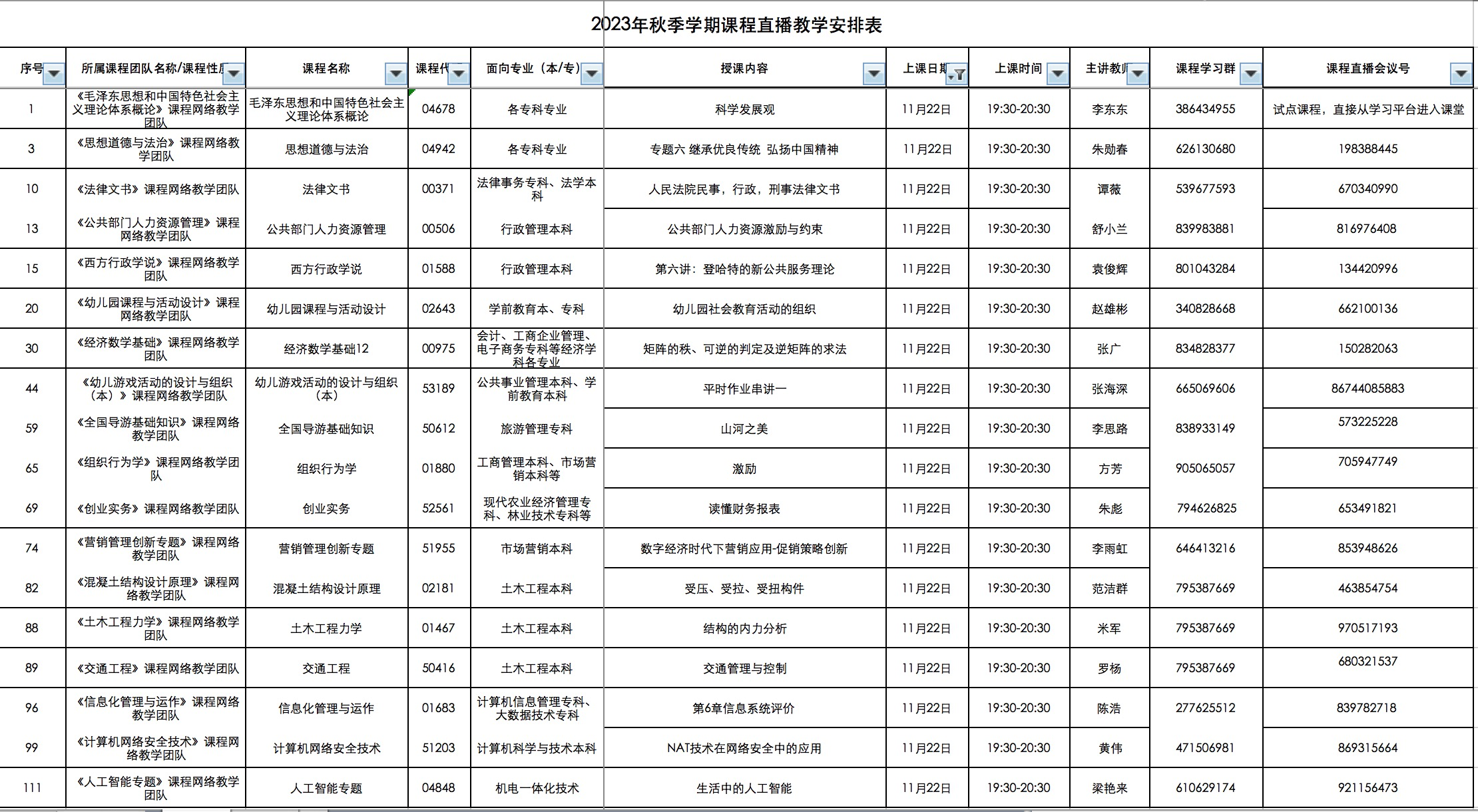 今日重开直播课程如下图所示,请涉及到的班主任通知学生按时上课