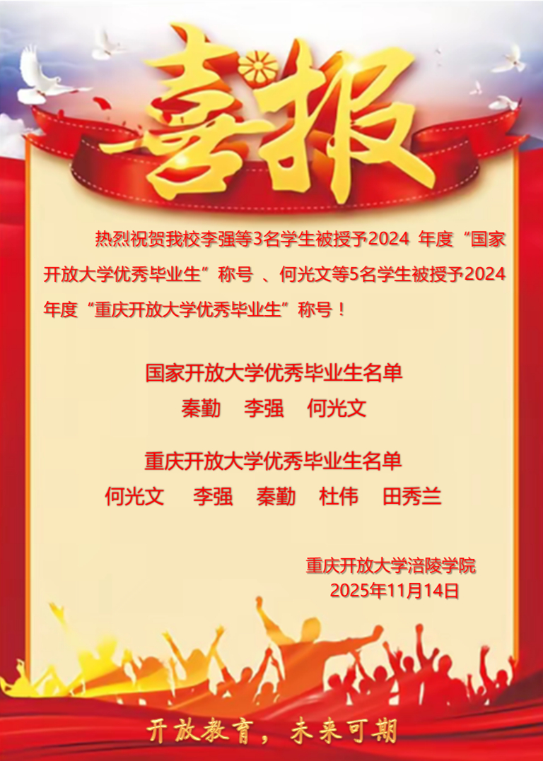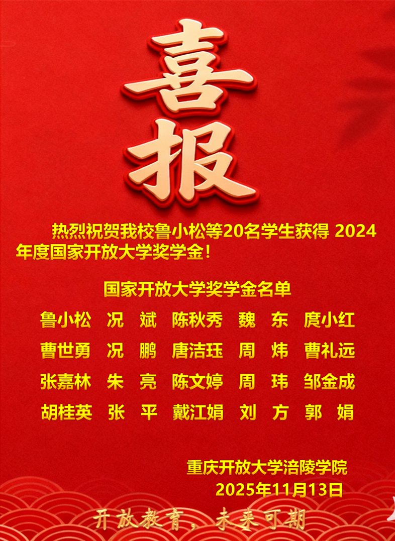 热烈祝贺我校鲁小松等20名同学荣获2024年度国家开放大学奖学金