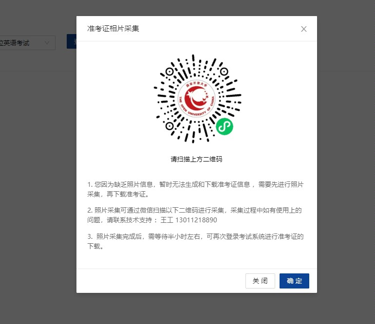 因学位考试报名系统BUG,出现无照片报名成功,为确保本次考试顺利组织,已开启考试照片采集系统至4月13日晚上23:59,请各分部学院借此机会通知所有无照片学生(包括5月考生、期末考试考生)速采集。本期有复读学生的,一定要利用好这次开启考试照片采集的机会通知在明天前扫这个二维码用学号登录后按照每步提示进行考试照片采集,否则期末无法参加考试。