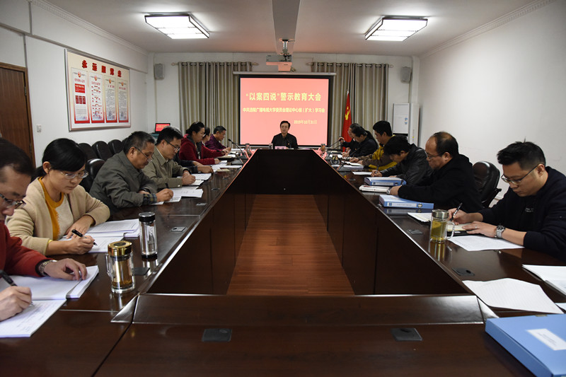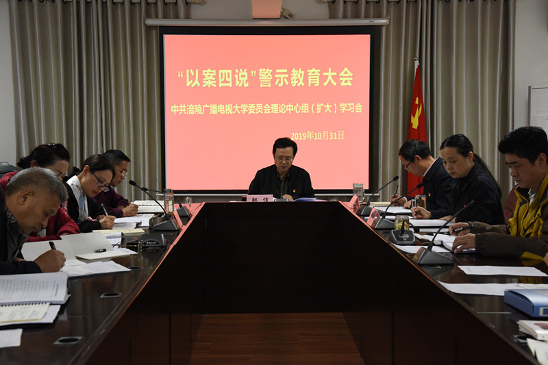 10月31日下午,我校党委理论学习中心组(扩大)召开“以案四说”警示教育大会,除个别干部因公外出,其他中层以上干部全部参加。全体与会人员集中观看了《照单慰问》、《“柔性独裁”的校长》和《警钟长鸣》等警示教育片,党委书记、校长邹信同志传达了2019年10月31日区委“以案四说”警示教育大会精神,党委委员、纪委书记周鸿鹄主持会议。