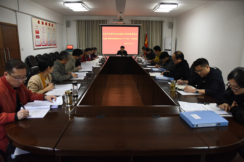 10月31日下午,我校党委理论学习中心组(扩大)召开“党性修养”专题学习讨论会议,除个别干部因公外出,其他中层以上干部全部参加。党委书记、校长邹信同志传达了《关于强化政治建设,坚持做到“两个维护”严格落实网络意识形态工作责任制的具体措施的通知》(涪委网办﹝2019﹞42号),并领学了习近平总书记关于依法治国与依德治国的重要论述。党委委员、纪委书记周鸿鹄同志主持会议。