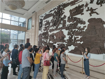 在涪陵榨菜集团讲解员刘菲菲介绍下,学员们了解了榨菜的悠久历史文化、诞生故事、产品改革、品牌革命、品牌史记、传统制作工具等,通过全息投影技术观看了解榨菜营养。随后,进入了智能化生产车间观看了目前最先进的自动化榨菜生产线,包括切分、筛分、脱盐、脱水、拌料、计量包装、巴氏灭菌、装箱码挆。
