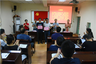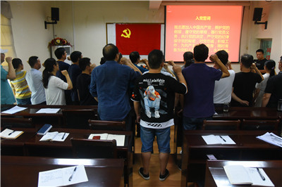 二是重温一遍入党誓词。全体党员在邹信同志的带领下在鲜红的党旗下向党再次宣誓,表达自己对党的忠诚和对共产主义理想信念的坚定。