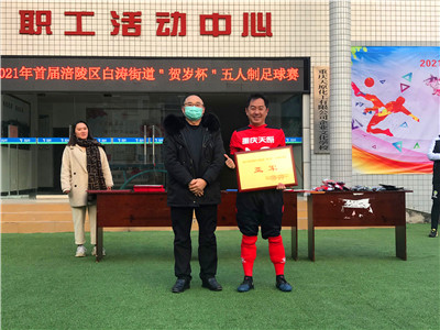 此次比赛于2021年1月7日拉开帷幕。在白涛街道天原化工厂五人制足球场举行。在为期5天的比赛期间,举办了任意球大赛、颠球大赛、足球综合技能大赛,以及眩晕足球等趣味足球比赛。增强了足球比赛的综合性和趣味性。并于第三比赛日1月11日,在“绿茵场”APP直播平台面向全国进行直播,观看人数高达1000多人。决赛日当天阳光明媚,绿茵场上球员们挥洒汗水,英姿飒爽。经过最后四场的激烈比赛和碰撞,2021年白涛街道“贺岁杯”五人制足球赛结果出炉,冠军为凯鹏化工足球队,亚军为重庆天原足球队,季军为华峰一队足球队。并评选出最佳球员、最佳射手、最佳守门员等。