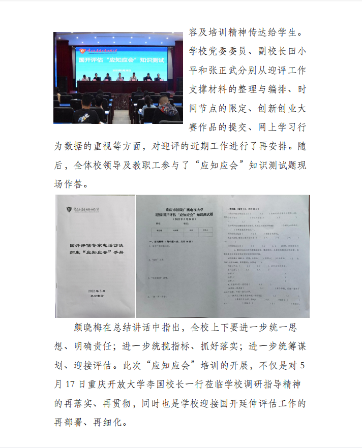三个“进一步” 吹响冲锋号——学校开展“应知应会”培训暨迎评工作再部署