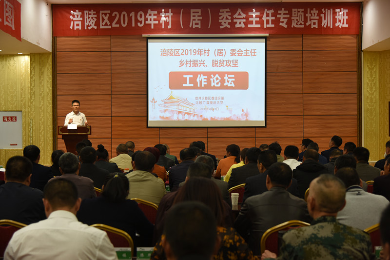 4月10日至12日,2019年全区村(社区)主任专题培训班在我校马武新农村学院举行,来自全区乡镇街道的206名村(社区)主任参加了为期三天的集中封闭培训。本次培训聘请了相关领导及专家为学员授课,以党纪党规解读、乡村治理体系建设、村(社区)基层民主法制建设、脱贫攻坚政策解读等为专题培训内容,并结合了工作论坛、团队建设及现场观摩。现场观摩教学在大顺乡“区农村‘三变’改革示范基地、区“2+X”产业扶贫示范点及重庆市廉政教育基地进行。