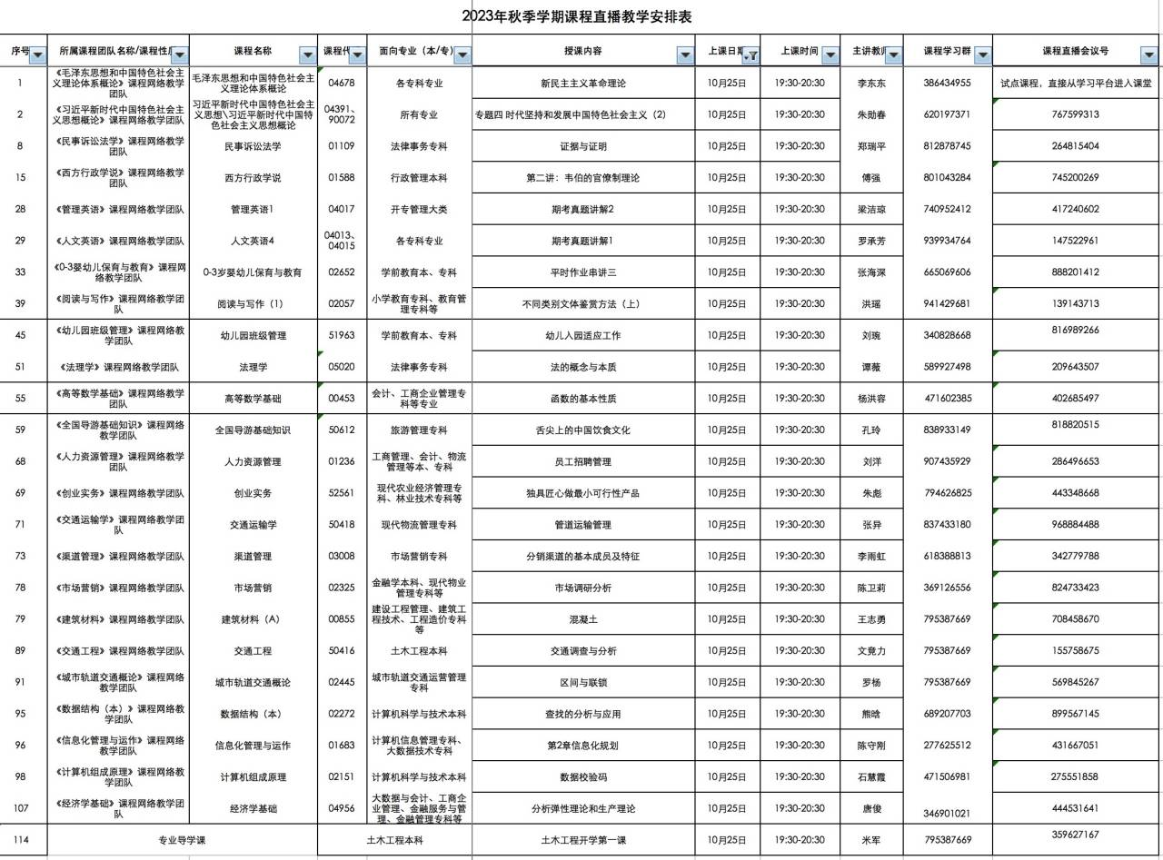 今日重开直播课程如下图所示,请涉及到的班主任通知学生按时上课