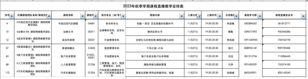 今日重开直播课程如下图所示,请涉及到的班主任通知学生按时上课。