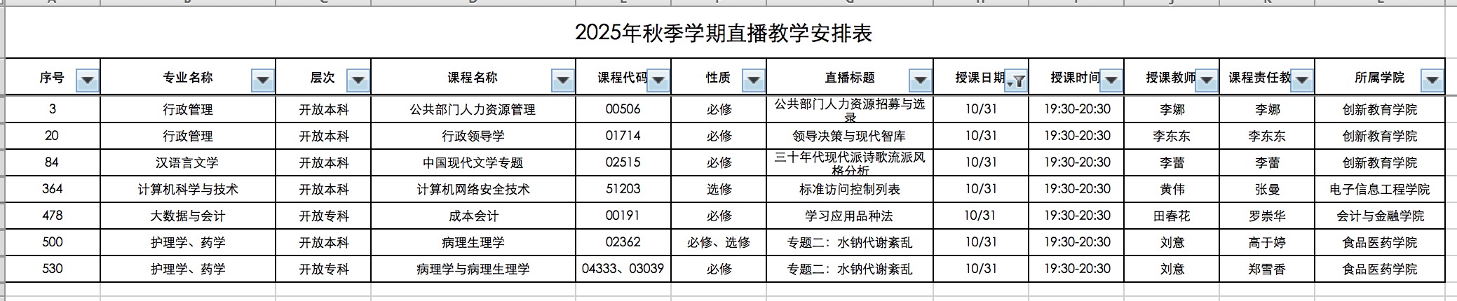 10月31日重庆开放大学直播课程