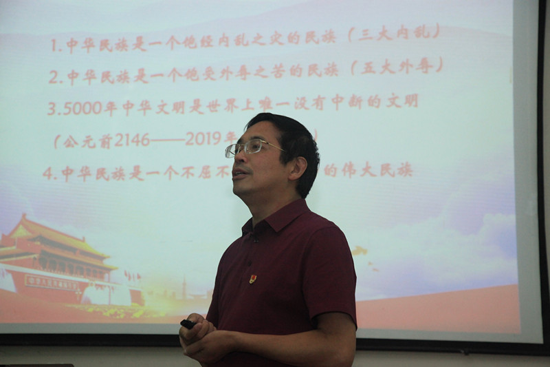他结合中国历史发展,指出中华民族复兴是必然选择的道路,这个历史使命光荣地落在中国共产党肩上; 结合电大的中心工作,指出每一个合格的共产党员都要在狠抓工作落实上下功夫。整个宣讲历史与文学相结合,有历史事件、有诗词歌赋,有古今英雄人物的伟大事迹;又紧密结合电大中心工作,指出了一个电大的共产党员狠抓落实的方法。整个宣讲内容丰富、中心突出,逻辑严密、层次清楚,且生动有趣,很有启发意义。