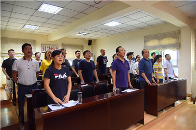 二是重温一遍入党誓词。全体党员在邹信同志的带领下在鲜红的党旗下向党再次宣誓,表达自己对党的忠诚和对共产主义理想信念的坚定。