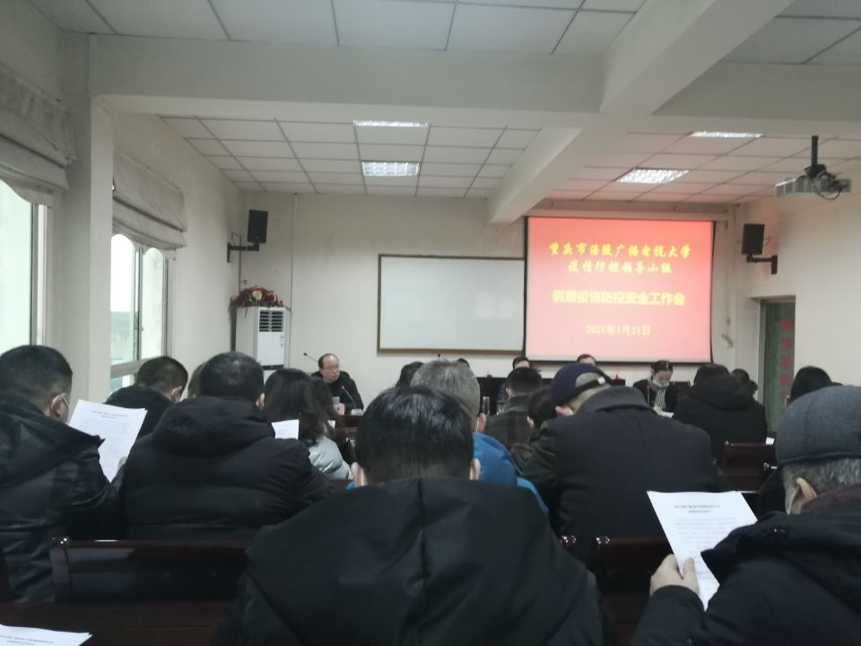 首先,我校疫情防控领导小组办公室付主任介绍了目前我国新冠肺炎疫情防控形势严峻,传达了近期我区区委召开的疫情防控大会精神,并对寒假期间全体教职员工个人就如何进行疫情防控的知识及必须遵守的一些我区的政策与规定作了详细的解读。然后,学校疫情防控领导小组副组长、分管领导向校长对疫情防控相关要求作了三点强调。一是向校长指出寒假期间全体教职员工务必做到原则上不是必须离渝最好不要离开涪陵;二是严禁我校职工到中高风险地区旅游、探亲或者访友;三是如果有特殊情况需要到市外去的职工必须遵守请销假制度。然后,向校长号召大家务必持续绷紧疫情防控这根弦,共同筑牢我校基层防疫防线,巩固学校当前防疫成果。最后,我校党委书记、校长强调大家务必高度重视,将作好个人疫情防控工作作为一项重要政治任务来抓,我校党委将对违反疫情防控规定的职工实行责任追查制。