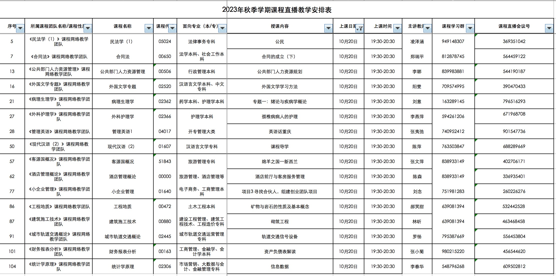 今日重开直播课程如下图所示,请涉及到的班主任通知学生按时上课