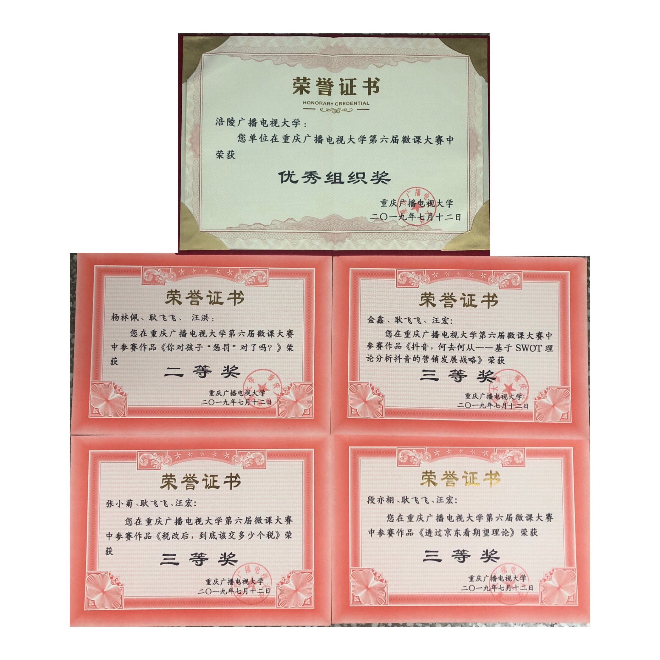 近日,重庆广播电视大学第六届微课大赛评选结果公布,我校参赛教师取得优异的成绩,由杨林佩老师主讲的《你对孩子“惩罚”对了吗?》获得二等奖,金鑫老师主讲的《抖音,何去何从----基于SWOT理论分析抖音的营销发展战略》、张小菊老师主讲的《税改后,到底该交多少个税》、段亦栩老师主讲的《透过京东看期望理论》微课获得三等奖。同时,学校被授予大赛优秀组织奖。