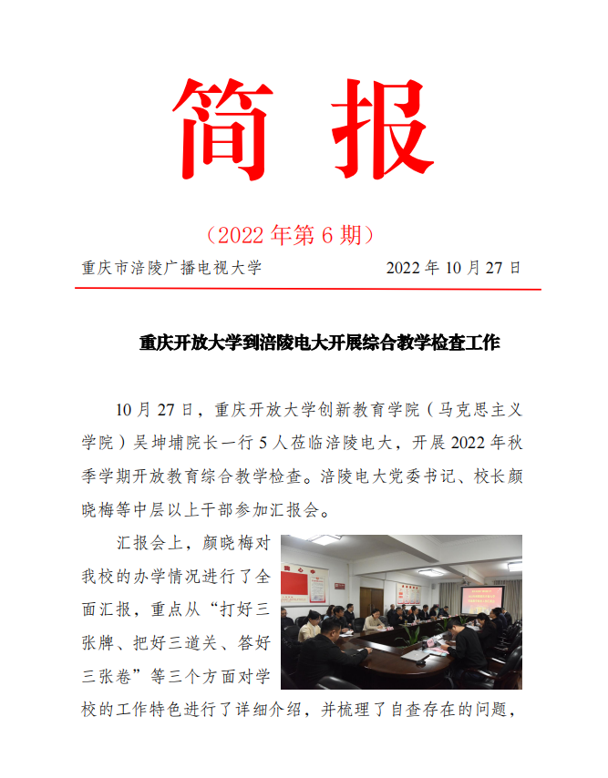 重庆开放大学到涪陵电大开展综合教学检查工作