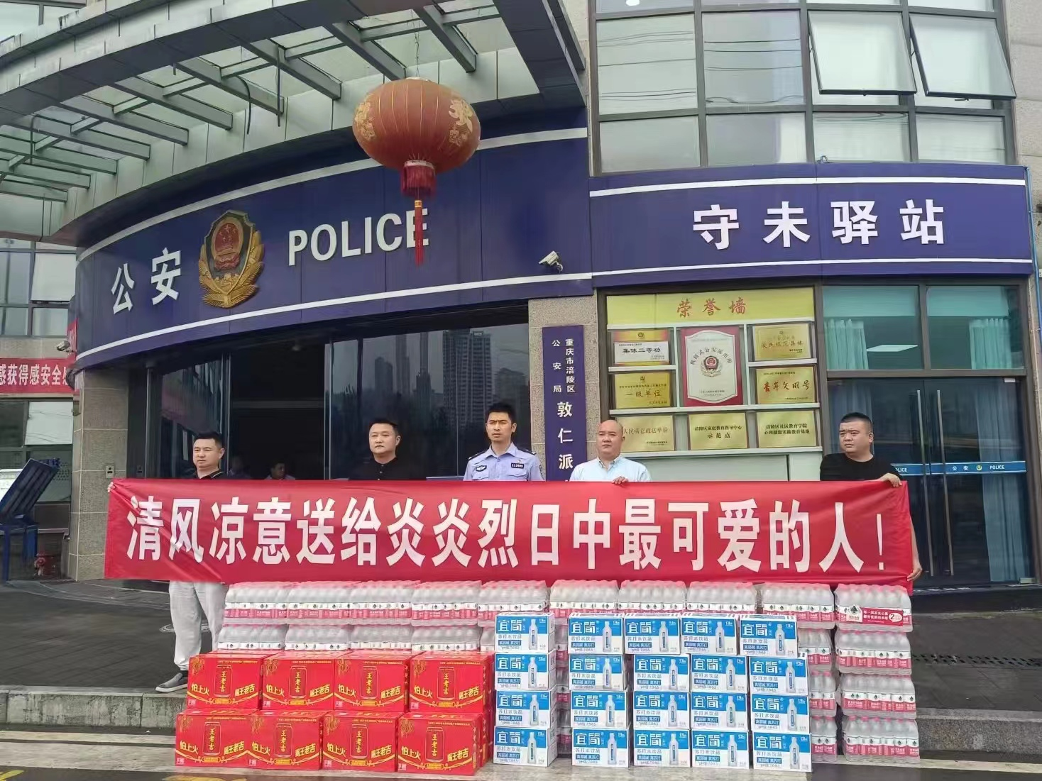 7月19日下午,涪陵电大合作发展处主任陈锐、继续教育中心副主任王岭代表涪陵社区教育学院服务指导中心来到涪陵敦仁派出所为民警送清凉饮料。
