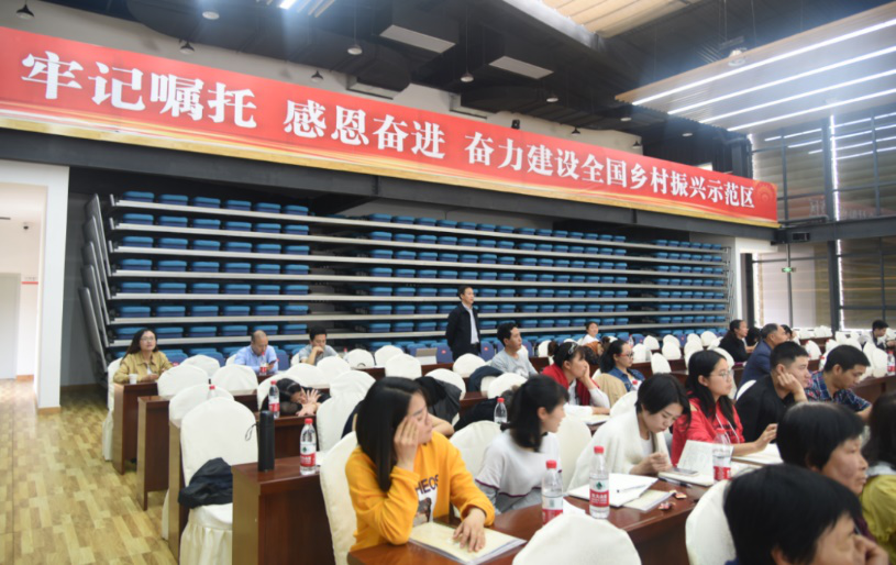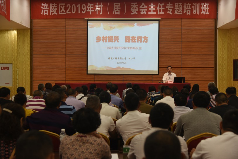 4月24-26日,学校在即将挂牌成立的乡村振兴学院(本部)举办了涪陵区村(居)委主任“乡村振兴”专题培训班,田小平副校长在培训班作了《乡村振兴,路在何方》专题报告,汇报了赴全国乡村振兴示范村的考察学习成果,并就我区乡村振兴学院的发展规划、人才培养等方面作了介绍,提出了加强乡村振兴人才培训的倡议,拉开了涪陵区乡村振兴人才培养的序幕。